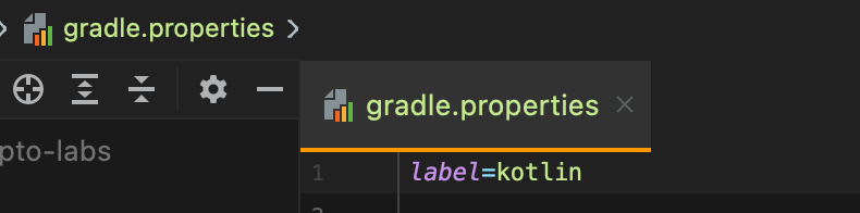 build.gradle.kts 파일은 빈 파일로 만들어두고, gradle.properties 파일에는 label=kotlin 을 입력한다.