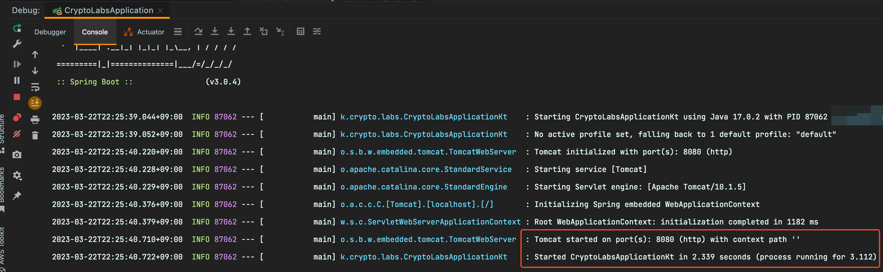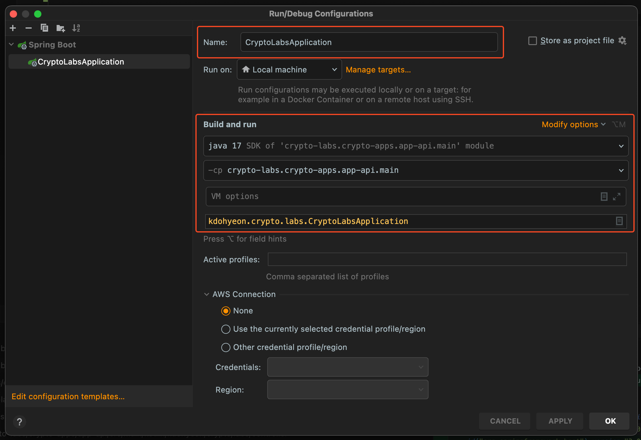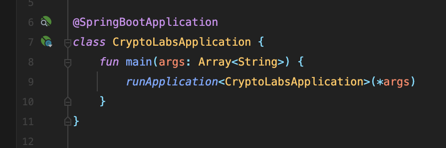 생성한 패키지 아래에 "CryptoLabsApplication" 처럼 스프링 어플리케이션 클래스를 만든다.