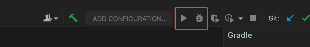 Sample API 도 만들었으니 스프링부트를 실행시켜보자. IntelliJ 에서는 우측 상단에 위치하는 세모 모양과 벌레 모양을 클릭해서 어플리케이션을 실행시킬 수 있는데, 지금은 설정이 되어 있지 않으니 설정을 해야한다. (IntelliJ 에서 자동으로 설정을 해주는 경우도 있다.)