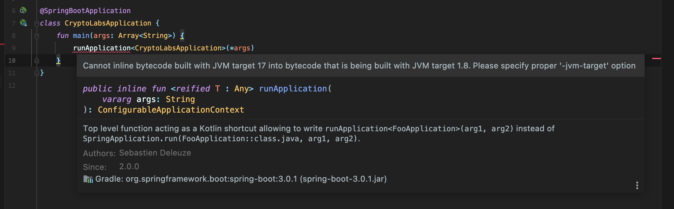 Cannot inline bytecode built with JVM target 17 into bytecode that is being built with JVM target 1.8. Please specify proper '-jvm-target' option