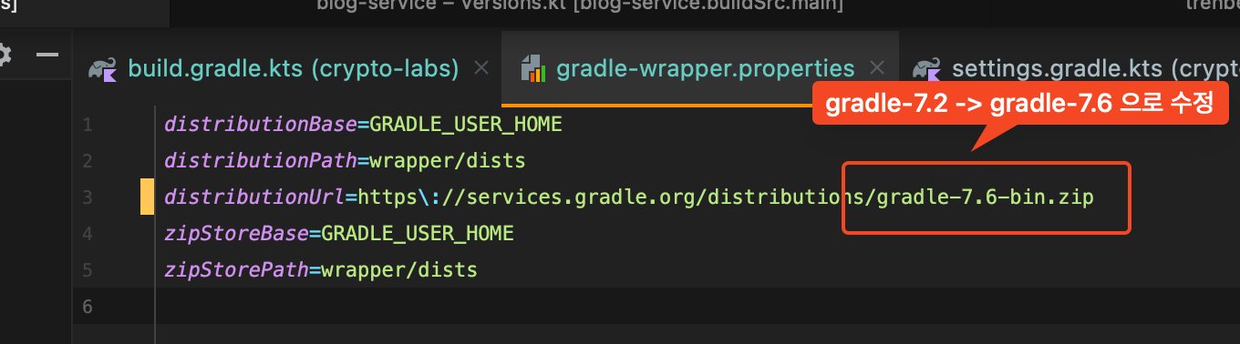 gradle-wrapper.properties 파일은 /crypto-labs/gradle/wrapper/ 디렉토리에 위치한다.