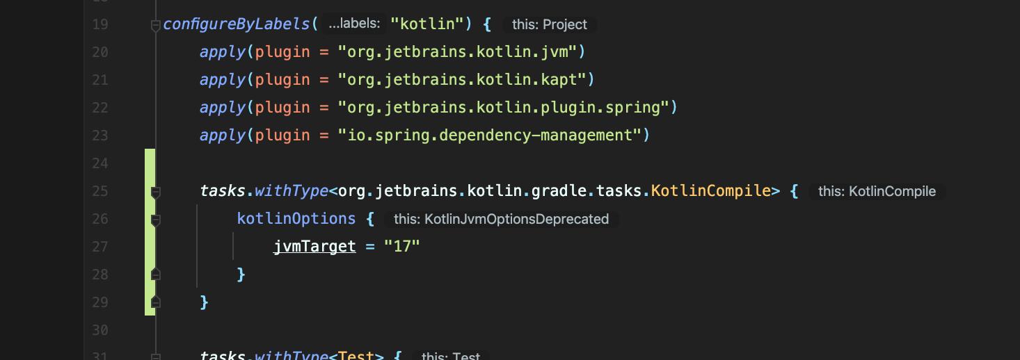 해결 방법은 build.gradle.kts 에 kotlinOptions 으로 jvmTarget 을 명시해주면 된다. 아래 코드를 최상단 build.gradle.kts 의 configureByLabel("kotlin") { ... } 부분에 추가했다.