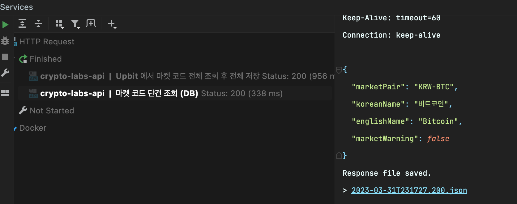 ### Upbit 에서 마켓 코드 전체 조회 후 전체 저장
