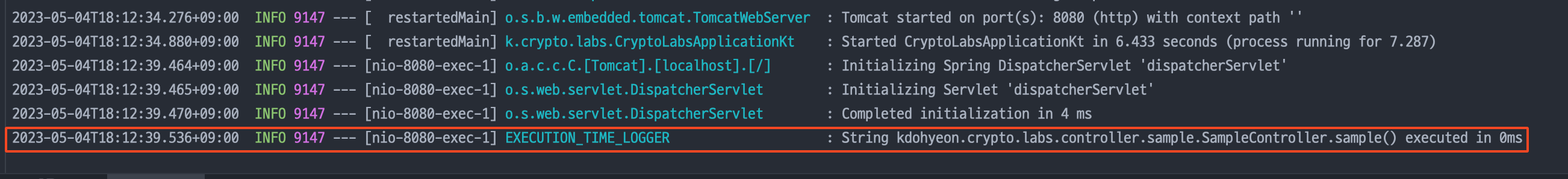 - EXECUTION_TIME_LOGGER 이름으로 로그가 남는걸 확인할 수 있다.