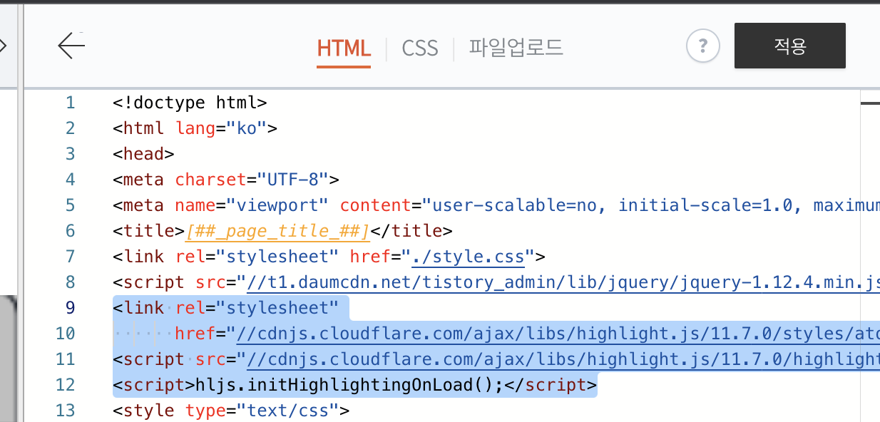 아래 스크립트를 HTML 편집기에 추가
